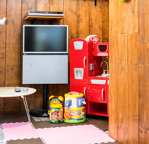安全なおもちゃや、楽しいビデオを完備した キッズルームは、保護者様のセット椅子と ガラス越しになっています。 お互いの様子が見えるので、 お子様も保護者様もとっても安心です。 また、親子クロスや、飛行機の形のカット椅子を 用意しており、小さなお子様でも、安心して楽しく カットできます。